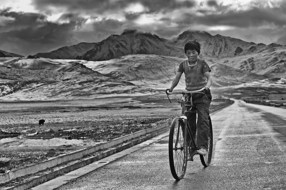 This was an unforgettable scene for me. Against a background of snow-capped mountains in the distance, a boy was cycling an old bike, still his starry eyes shined bright. “Happiness resides not in possessions, and not in gold, happiness dwells in the soul.”