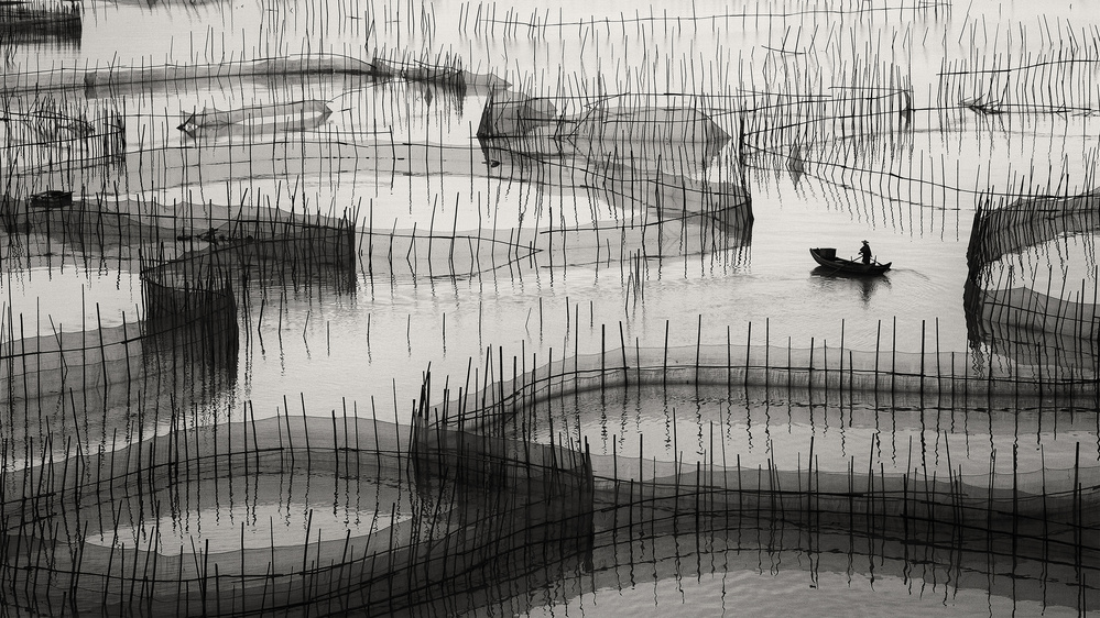 Note also that in both photographs the tiny appearing fisherman in his boat is well positioned. He leads the eye into the picture and lets it roam among the fishing nets.