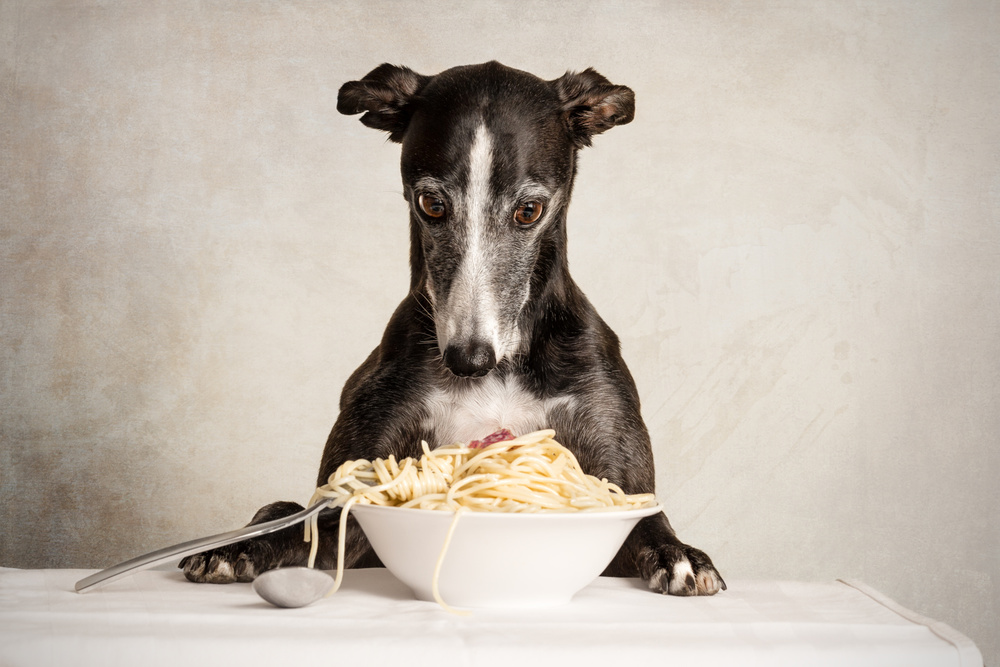 I managed to put some elements of fun into it, some cuteness, a little story and the emotion to bring it all together. I was so proud of my dog! Getting to sit in front this table, looking at the pasta and the small piece of Italian sausage on top of it. Her paws next to the bowl and patient waiting to get rewarded for the photo by eating it!