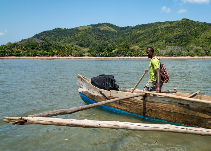 With a fully-loaded bag you are probably carrying some $20k worth of photographic equipment on your back. Specialist photographic insurance will cover that amount of equipment and is essential if the shoot is in any way connected with a business, even if the business is simply to sell the pictures later on a stock site. Some household insurance will cover it too but not many will cover a single item of the value of a 600mm prime. But in addition to the insurance, it’s a risk assessment too and if you are trekking through jungle or rainforest or using small boats to get around there is a limit to the number of precautions that you can take. The picture shows my fully loaded bag in the bow of a man-powered leaky canoe which was the only mode of transport to the Lokobe National Park in Nosy Be, Madagascar.