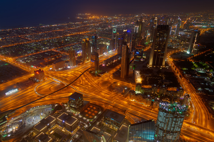 The view of Dubai was taken from the viewing platform of the Burj Al Khalifa. For this shot, to ensure that there was some ‘blue hour’ sky in the picture, the ticket for the viewing platform was booked well in advance following a check of sunset times and the day’s scheduled worked back from that.