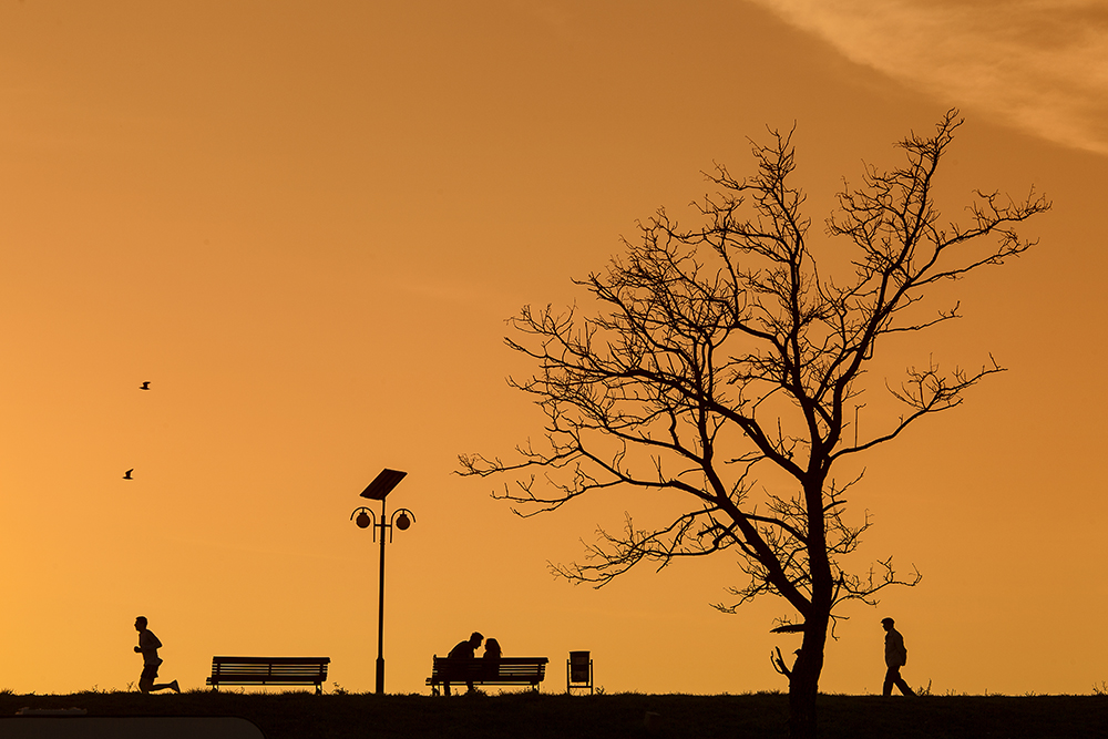 Dark silhouette(s) in the foreground is popular subject for images taken during sunset golden hours. Just try it out by choosing a lower shutter speed. With less shutter speed, less light falls on the sensor. A person or object in the foreground will appear more or less black as a silhouette on the image. However, make sure that the shutter speed is still long enough for the background to continue to shine in gorgeous golden light colours.