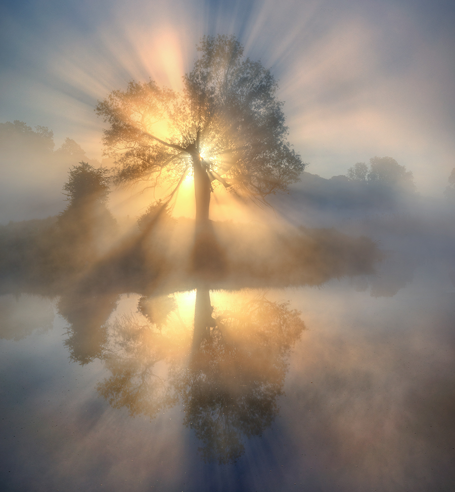 The calm of morning allows for other meteorological phenomenon which are somewhat unique to the time of day. The most obvious (and sought after by many) are low fog and mist which form from evaporative cooling over wet ground or a body of water during the night. As the sun rises and the air warms, the mist and fog dissipate, so the early riser is often rewarded with creative elements not generally seen later in the day.