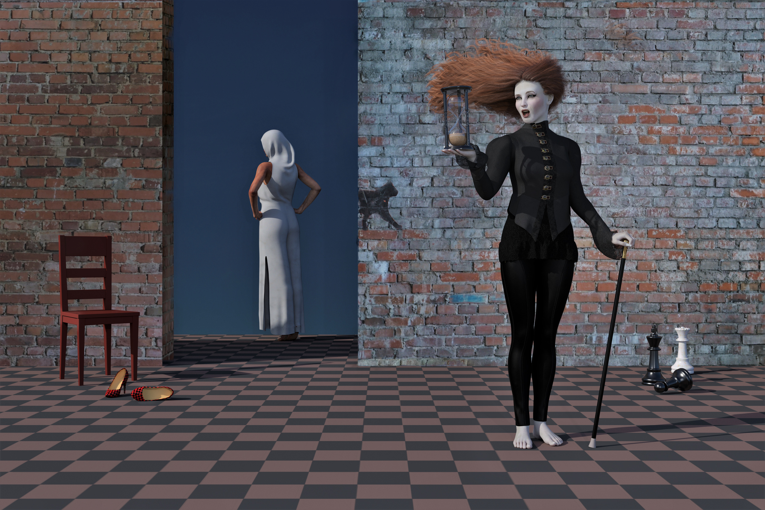 No, my photos are mostly taken spontaneously on the street, or somewhere, never in a studio. In connection with 3D technology, however, I design virtual rooms in which I include the effects of light and space