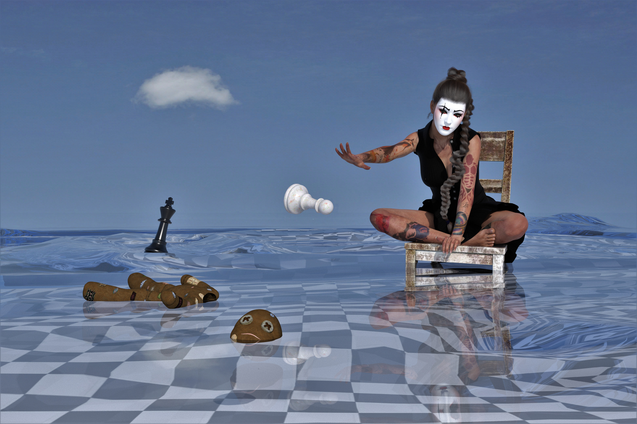 I am not using any predefined workflow. As a rule, I sketch my idea for a picture on a sheet of paper with a pencil. Then individual picture elements are processed as 2D composing or in 3D scenery. Depending on the tool or medium, the workflow can be very time-consuming. Often it is a detailed fine work - like an oil painting.