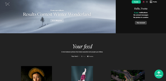 'Your feed' is the red line to follow to see the published and awarded work of your favourite photographers on 1x.