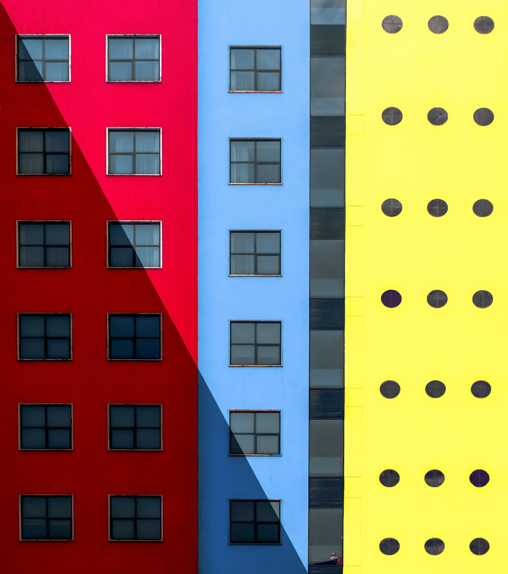 If I can’t create an artistic image with the whole architecture, I look for a fragment of the entire building that has some interesting artistic appeal. The fragment must have some bright colours, shadows, lines, geometric patterns, etc. Once I find it, I try to create a two-dimensional minimal abstract art out of that whole building. I make it so that my composition is very simple without clutter and framed without having to crop too much. The artistic elegance of the subject plays a major role in my research. To present my work in the best possible way, I do my post processing with Photoshop.
