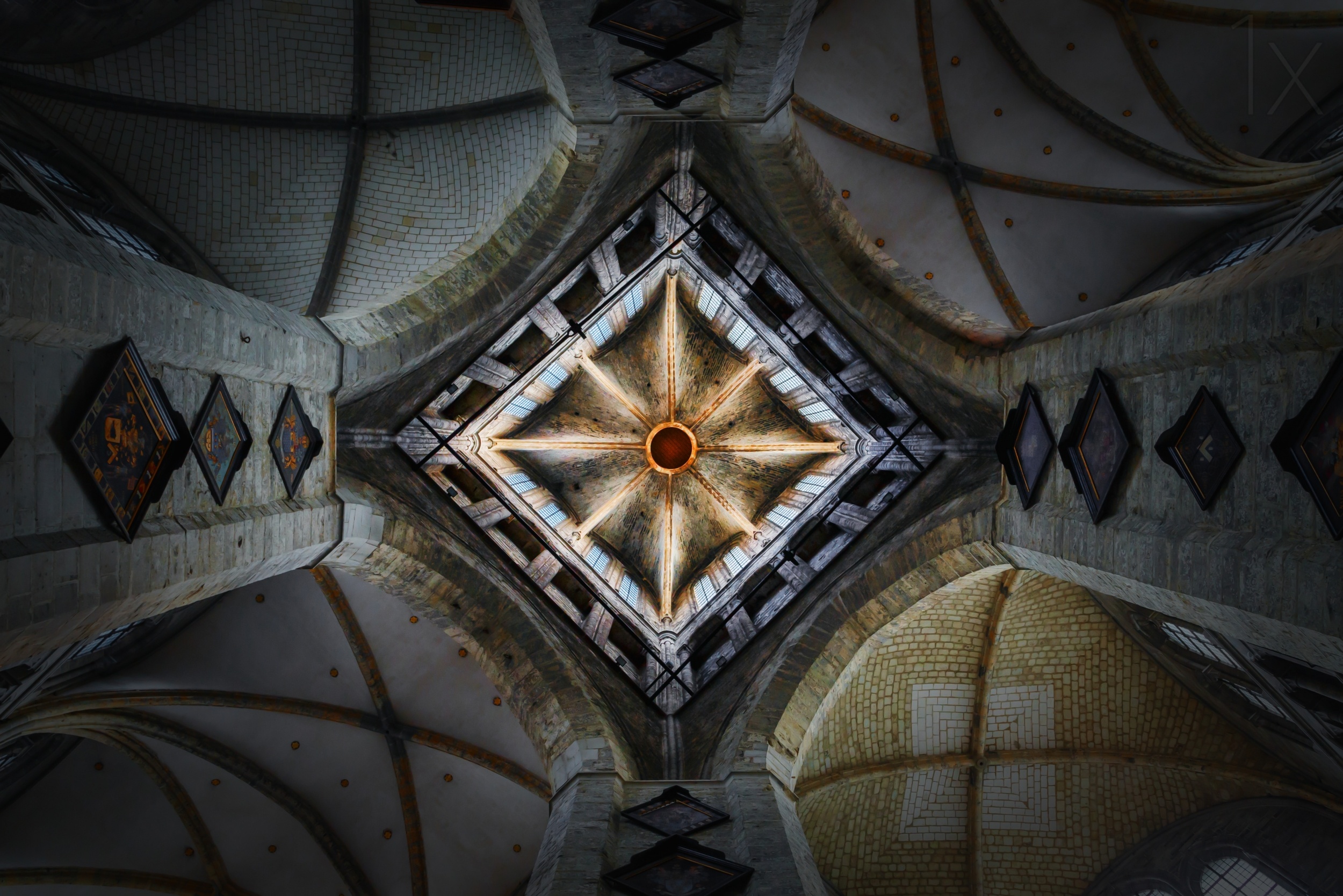 He writes: "St. Nicholas' Church (Dutch: Sint-Niklaaskerk) is one of the oldest and most prominent landmarks in Ghent, Belgium. Begun in the early 13th century as a replacement for an earlier Romanesque church, construction continued through the rest of the century in the local Scheldt Gothic style (named after the nearby river). Typical of this style is the use of blue-gray stone from the Tournai area, the single large tower above the crossing, and the slender turrets at the building's corners. Built in the old trade center of Ghent next to the bustling Korenmarkt, St. Nicholas' Church was popular with the guilds whose members carried out their business nearby. The guilds had their own chapels which were added to the sides of the church in the 14th and 15th centuries. The central tower, which was funded in part by the city, served as an observation post and carried the town bells until the neighboring belfry of Ghent was built. …)."