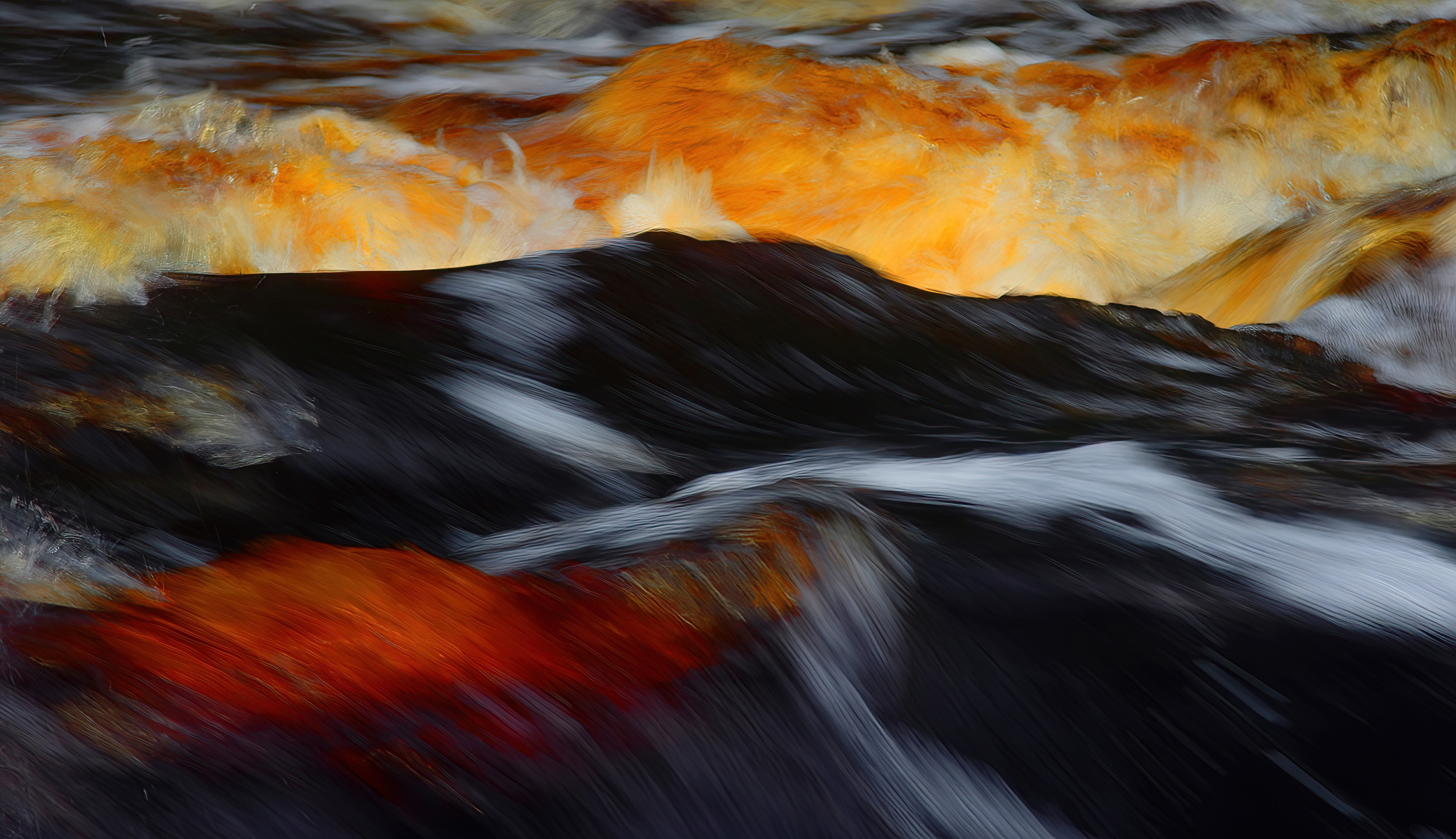 I was surrounded by imagery when growing up. My parents enjoyed art and all our walls were decorated with paintings. In junior high school, reproductions of modern art hung in the corridors. The nuances shone and spoke to me, and I felt the power of colour! Much later, I began to paint portraits and then made the acquaintance of Henri Matisse and Vincent van Gogh. I loved their strong, clear colours and disrespect for 'realism'. Their handling of colour reflected an inner reality and a joy for life while transcending boundaries. When I moved on to abstract painting and later photography, I brought all this into my creations. It works especially well for images of water. After all, water is both substantial and abstract, it is fleeting and light, poetic and beautiful, but also swirling and sometimes dangerous. My picture 'By the River' is an example of it. It is substantial, abstract, and colourful. I've highlighted a small part of a wave and accentuated the colour and shape. The river flows next to a waterfall and the surrounding land is moss land, rich in iron. Therefore, the foam turns reddish completely naturally.