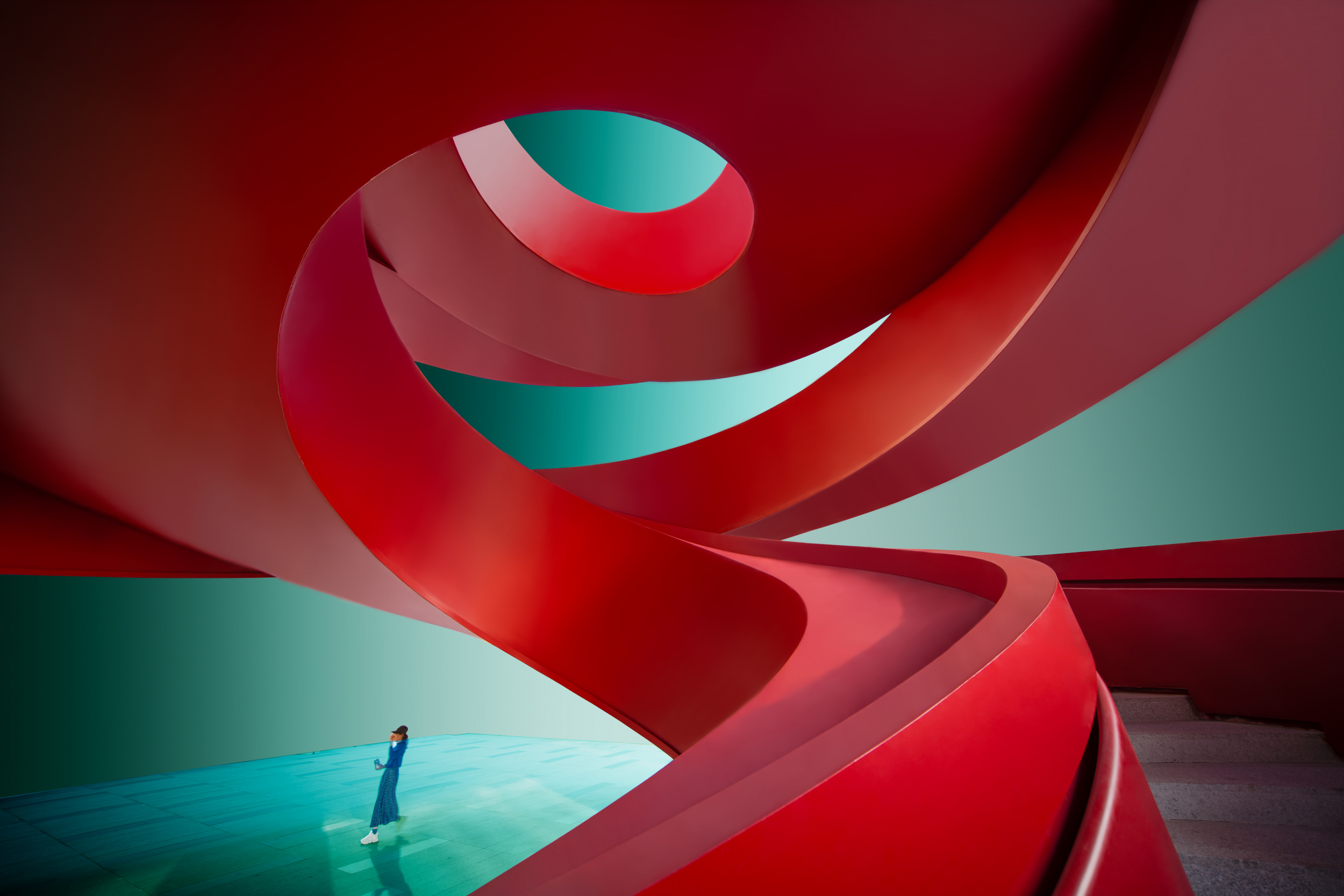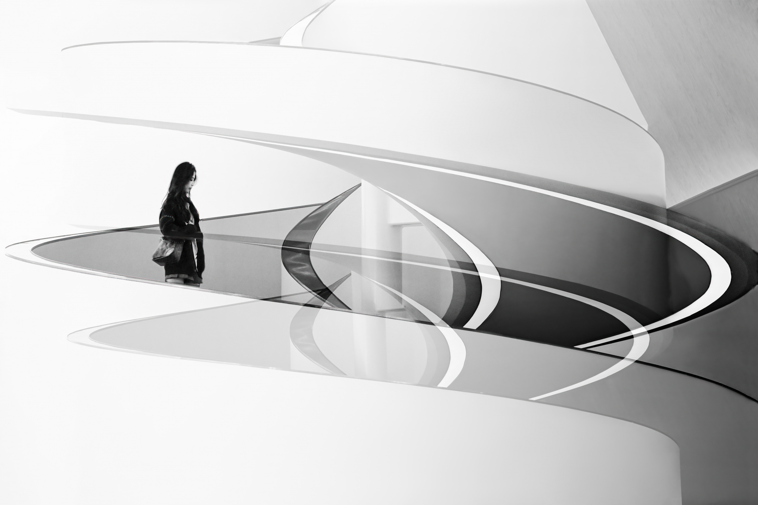 Konglingming excels in architectural photography. He constantly strives for perfection to enhance his passion for creation. As a professional who builds stairs, photographing them became his goal. He quotes: 'It is often said that architecture is solidified music. I think we should add another sentence: the spiral staircase is the violin in the orchestra, and its curve is the most beautiful curve in the world. Compared with other kinds of photography, architectural photography has great creative potential and can show the photographer's imagination and creativity. This is also the reason why people are fascinated.'