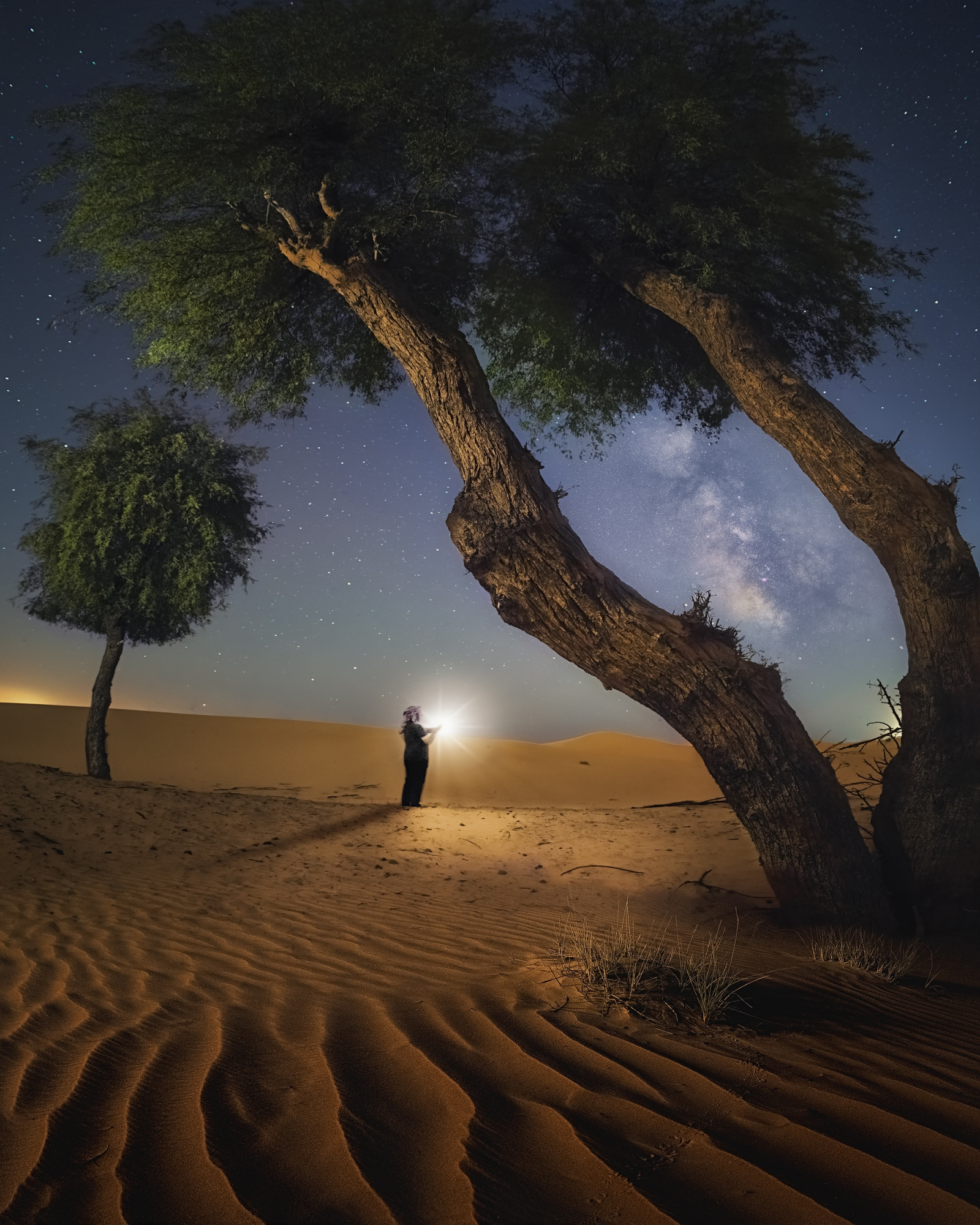 As I mentioned before, I always try to evolve with each photo I take, and aim to surpass my previous work. However, one photo that holds a special place in my journey is entitled *'The Death Reveals Life'*. It's of a famous tree in Oman, a tree that has been photographed by many professional photographers who inspired me early on. I was determined to present it in a way that no one had done before.