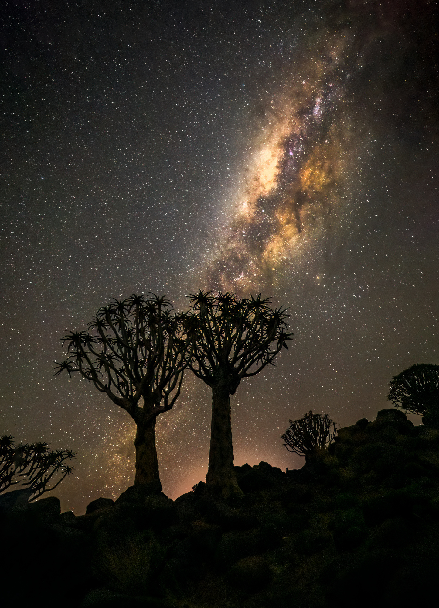 In Namibia, when you stand in the quiver tree forest, boulder forest or the unique red sand dunes under million stars and Milky Way in clear night sky in totally silence, it is impossible for you not to wonder, to think and feel. There is no word I could fully describe what I saw and how I felt. I felt totally lost in this wonderful nature environment in time and space.