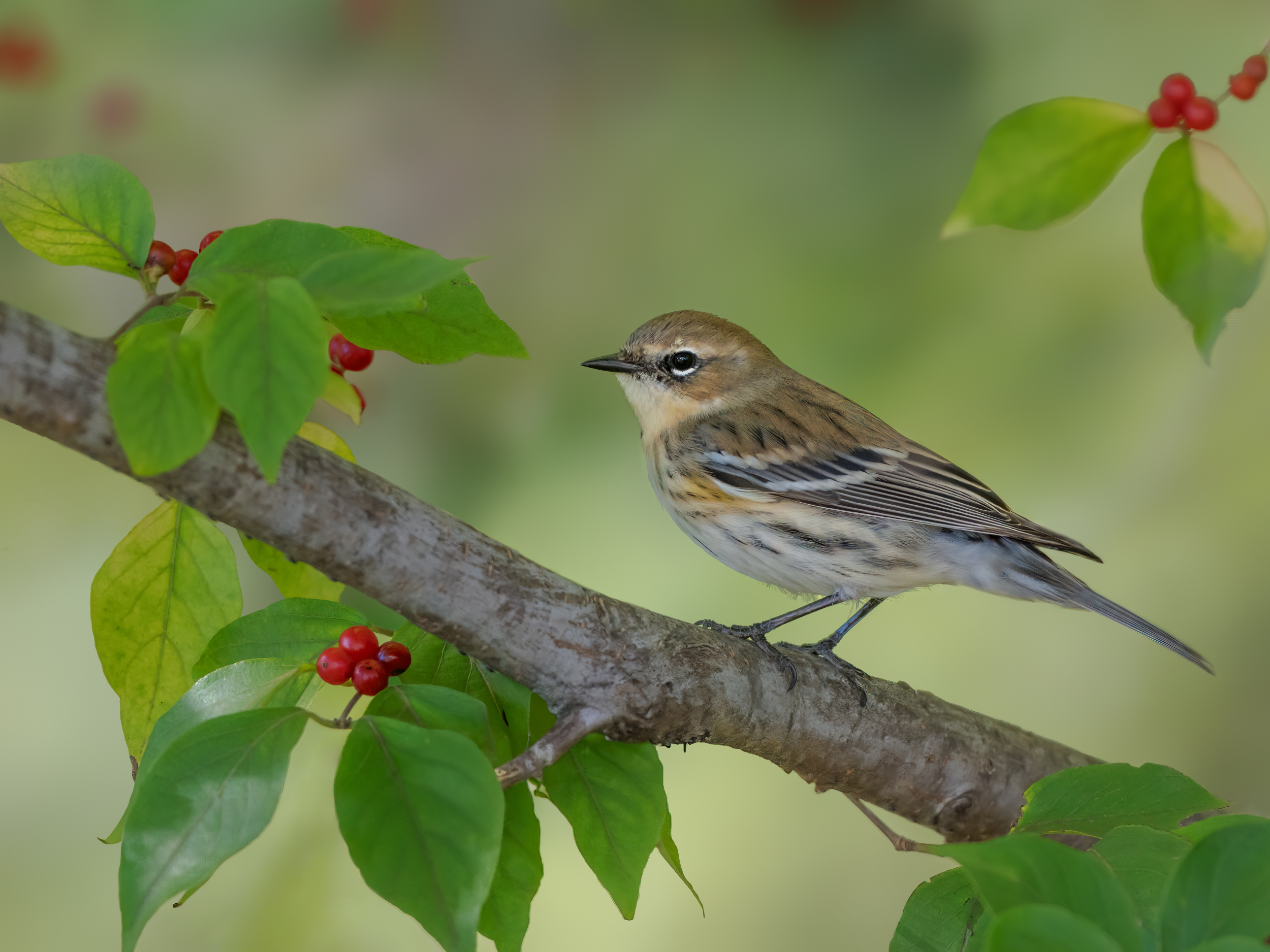 'Yellow-rumped Warbler' on Honeysuckle Branch
