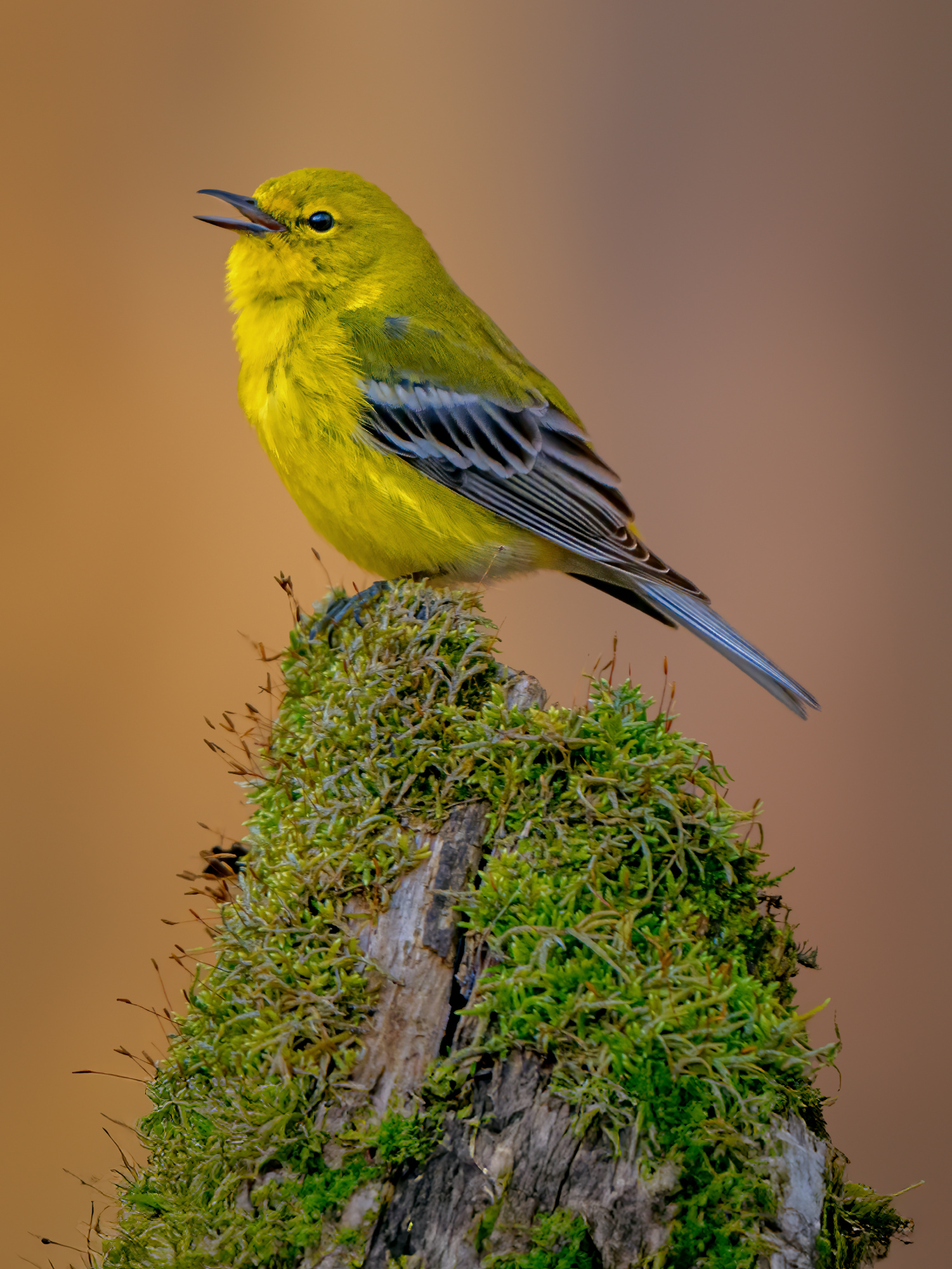'Pine Warbler' Enjoying a Morning on a Moss-Covered Log